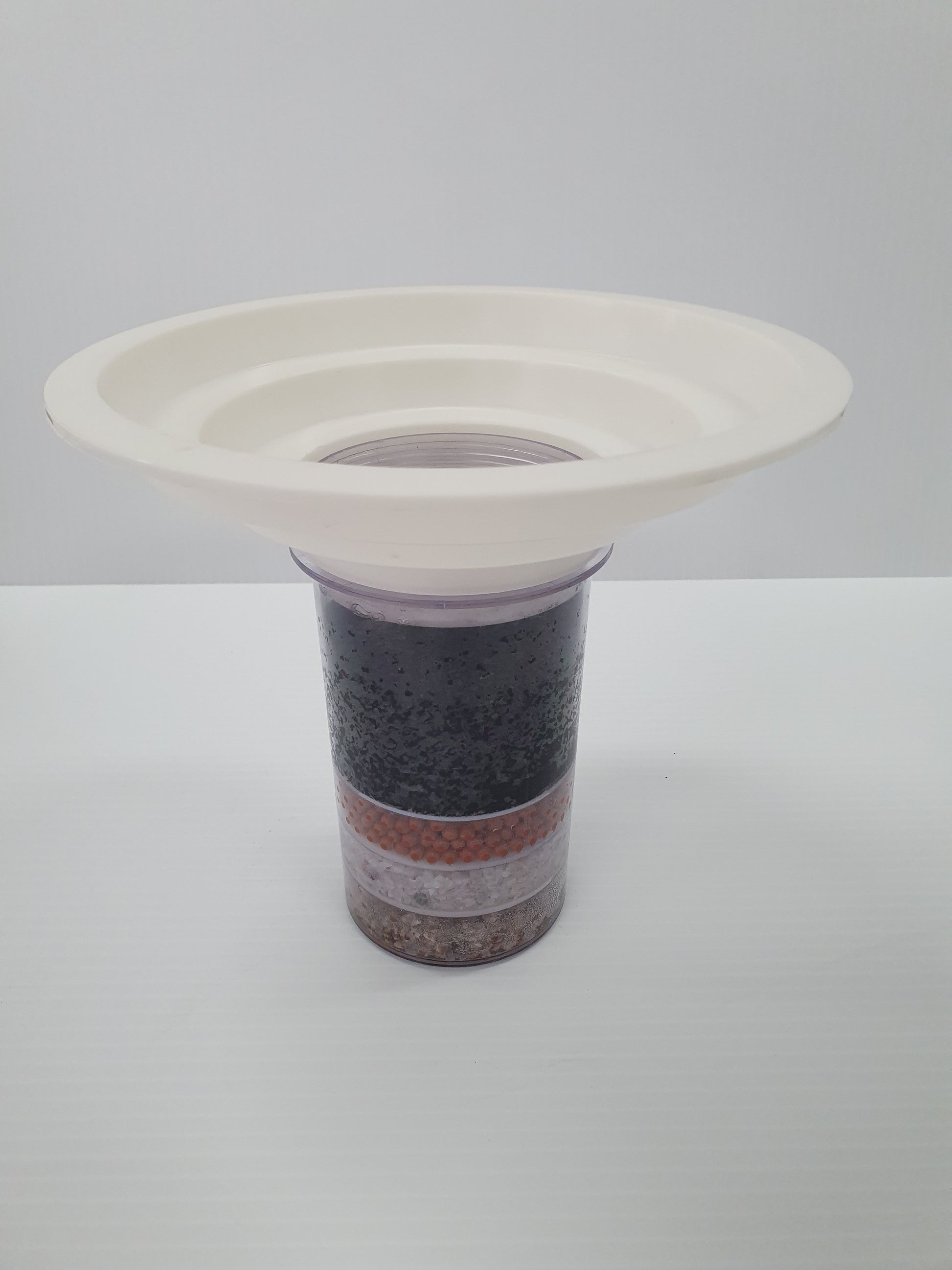 Multi stage water filter with ceramic filter, mineral stones and water tap.